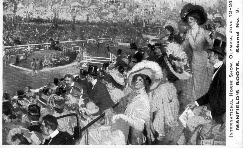 The first International Horse Show (minus the ‘Royal’ title) opened on June 7th 1907 at London’s Olympia. Its president was the Earl of Lonsdale (also famous in boxing circles) and vice presidents numbered 10 Dukes, 9 Marquises, 36 Earls, 14 Viscounts and 78 Lords. For the evening performance the audience wore full evening dress and there were traffic jams outside, albeit of horse drawn vehicles as the motor car was still a very expensive toy.